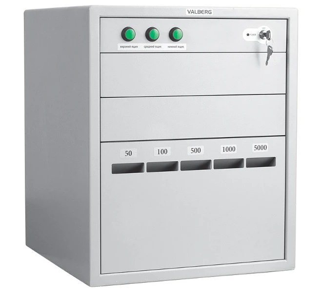 Предназначена для безопасного хранения различных банкнот, монет, пластиковых карт, чеков, ценных бумаг и прочих документов в течение рабочего дня