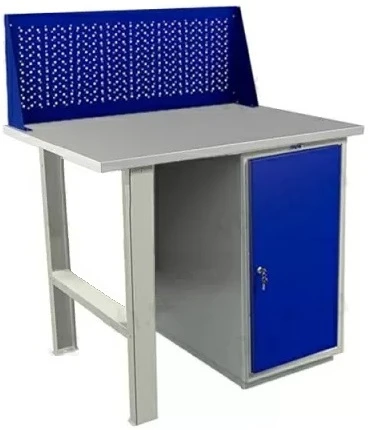 - Опоры и тумбы верстака окрашены стойким порошковым покрытием «шагрень». В отличие от гладких красок, его крайне трудно повредить или поцарапать инструментами.