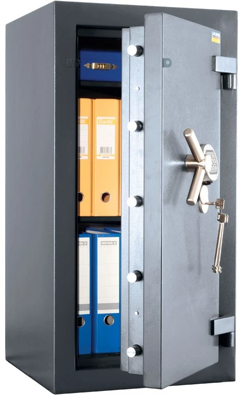 На дверь устанавливается сразу два сейфовых замка высокого класса: электронный PS 610/E36 и ключевой KABA MAUER, производимый в Германии. К замку прилагаются 3 ключа.